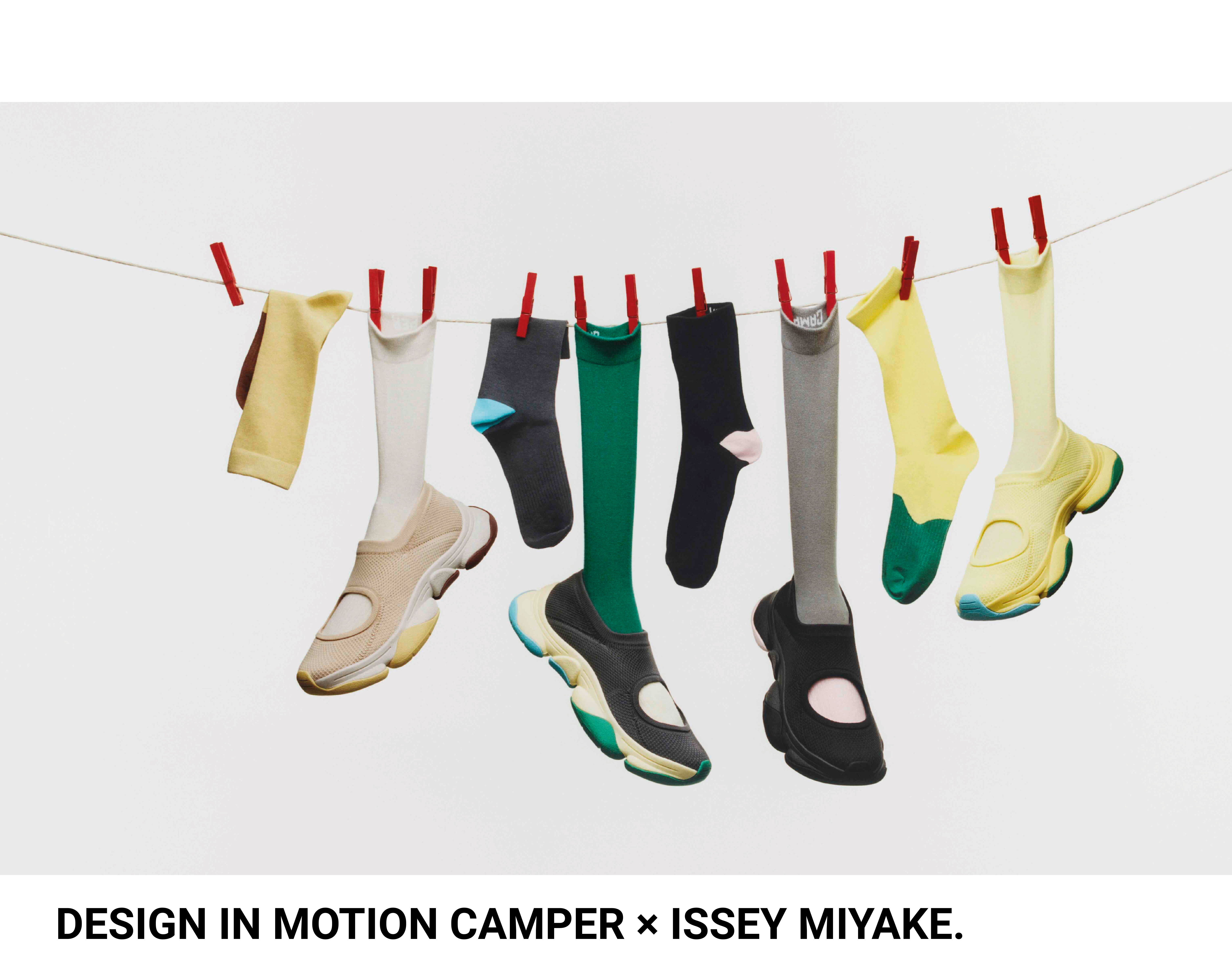 THIS SEASON, CAMPER CONTINUES ITS CREATIVE DIALOGUE WITH ISSEY MIYAKE WITH A NEW SILHOUETTE INSPIRED BY THIS IDEA.